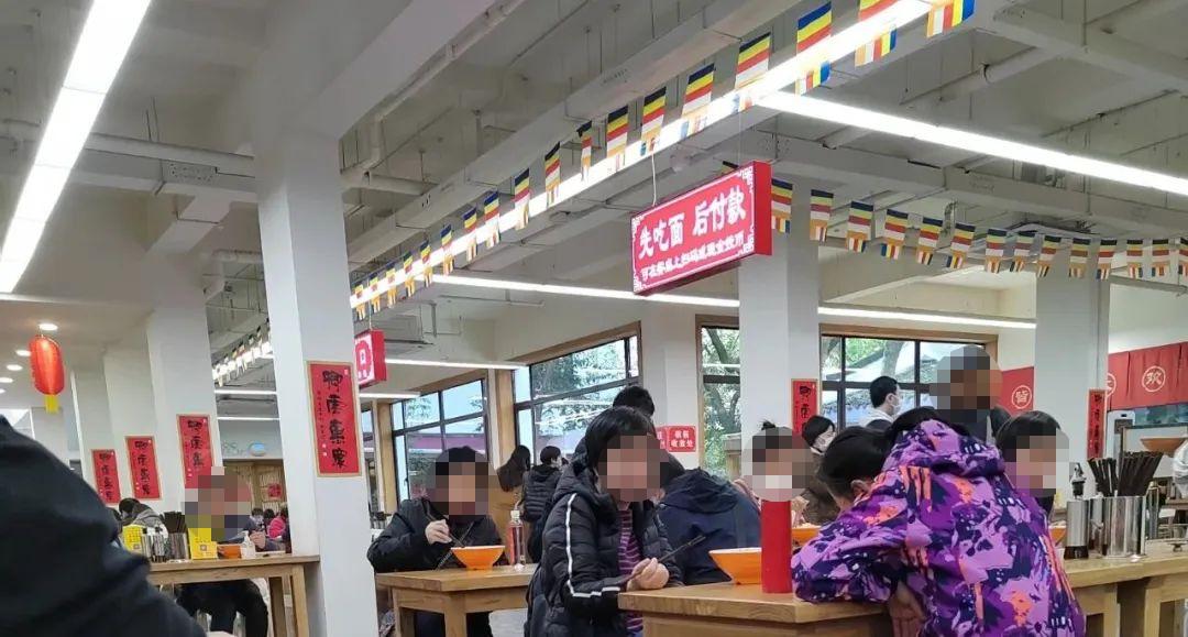 吃面的桌上还有这种特殊的吃饭劝诫结账也好佛系,先吃面后结账,而且似乎好像也许你不结账也没谁找你