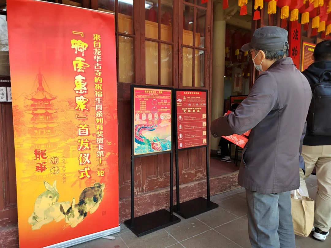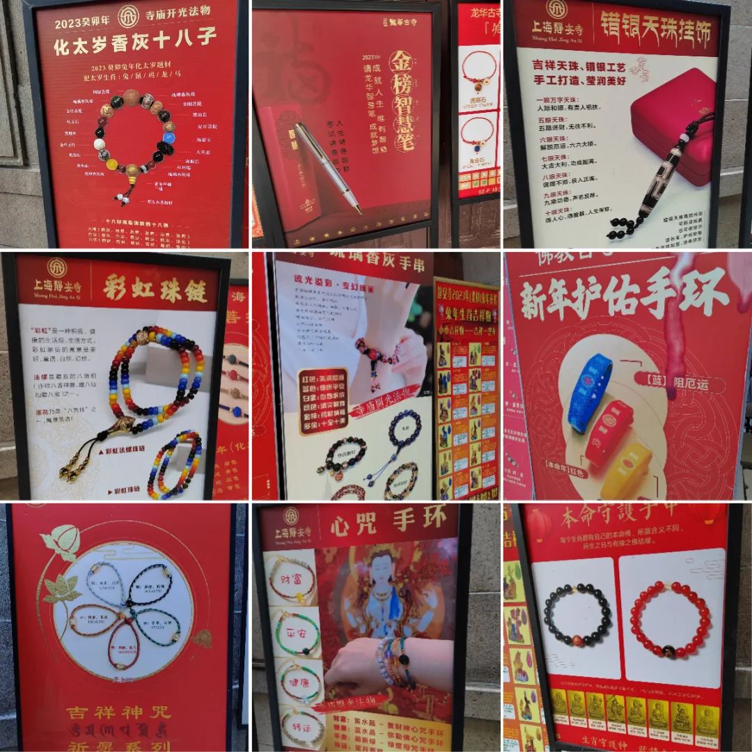 为了这些产品,上海寺庙们还非常懂得线上前宣,还为自己即将发布的产品做提前宣发线下比如龙华寺法物流通处门口立着产品易拉宝