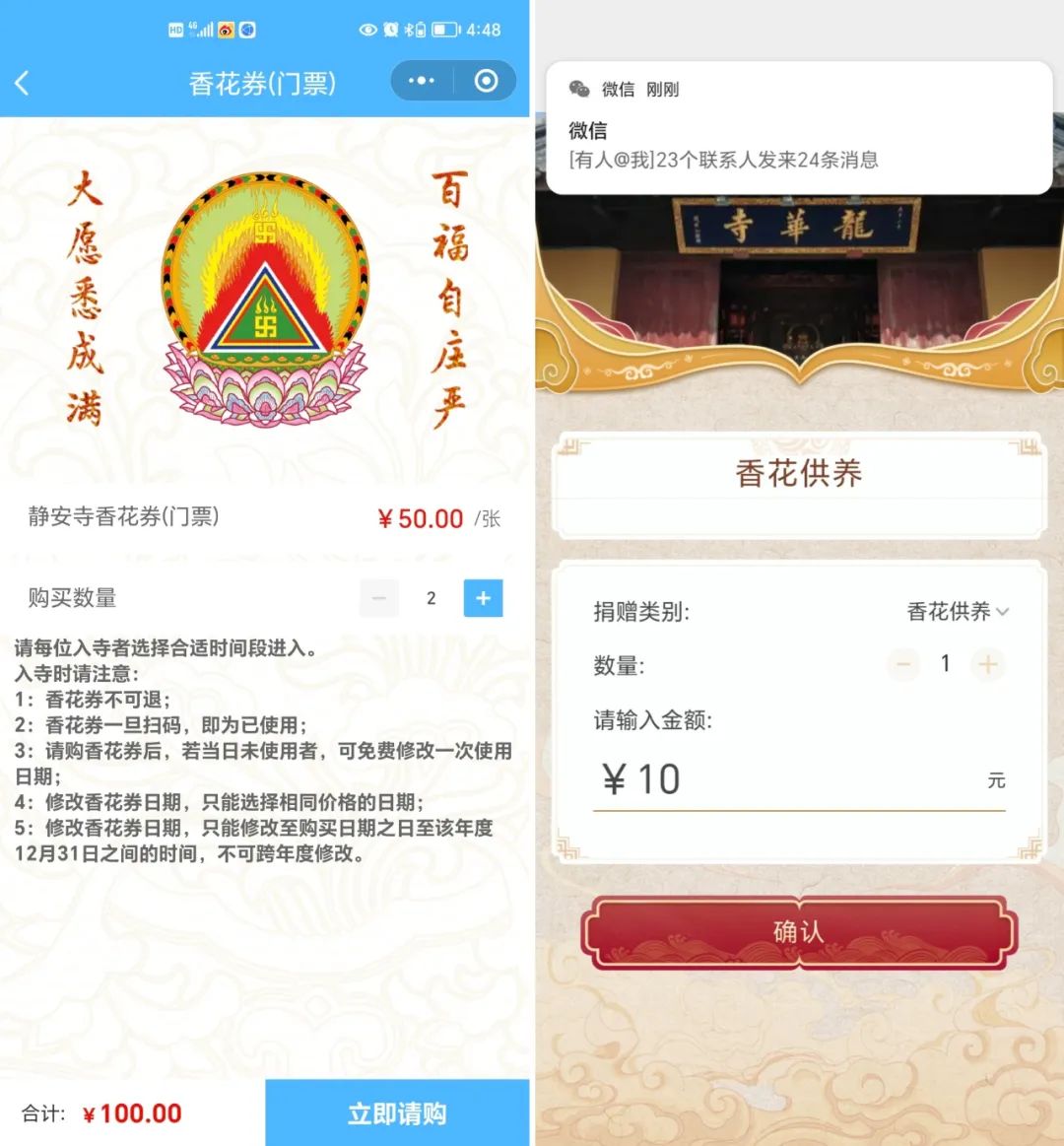 门票什么的基本都已经线上化操作了,静安寺、龙华寺、玉佛寺都叫的香花券