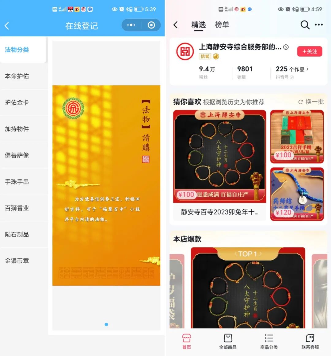 另一方面不仅年轻人奔赴寺庙,寺庙也在奔向年轻人,手串、线上、可可爱爱的佛像手办都在告诉我们寺庙变了而上海的寺庙也被上海这座城市赋予了更多商业化的色彩