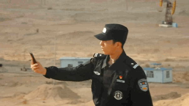 (抽油机前找信号的路队有点帅~)