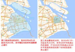 详见→新建公共停车场具备充电功能的停车位占比要求明确!这份管理办法4月1日起实施国三柴油货运机动车辆在上海市辖区内的所有道路上全天禁行4月1日起,全天禁止国三柴油货运机动车辆在上海市辖区内的所有道路上行驶。市交通委、市生态环境局、市公安局《关于调整本市国三标准柴油货运机动车限制通行政策的通告》(沪交科〔2020〕23号)同时废止。自2024年7月1日起,全天禁止国三柴油客运机动车辆在上海市S20外环高速以内的道路上(不含S20外环高速以及S20外环高速高架段投影下的地面道路)行驶。违反通行规定的,由本市公安交通管理部门根据《中华人民共和国道路交通安全法》的有关规定依法处理。