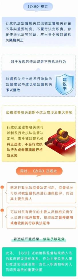 https://www.shanghai.gov.cn/202304szfgz/20230221/18ac6678f68f49298b13e3c6baff5f77.html查看)自4月1日起施行。《办法》明确,行政执法监督主要包括行政执法重要制度落实情况;行政执法责任制落实情况;严格规范公正文明执法情况;依法应当监督的其他内容等内容。开展行政执法监督活动,可以采取查阅、调取行政执法案卷或者视听资料、电子数据和其他有关材料;实地调查、勘验;鉴定、评估、检测等措施。对于阻挠、妨碍行政执法监督工作的单位和个人,由行政执法监督机关对有关责任人员予以批评教育;违反《中华人民共和国治安管理处罚法》的,由公安机关依法予以治安管理处罚。