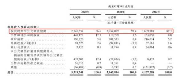京东产发的净利润之所以远高于收入,是源于投资物业的公允价值变动。2020年至2022年,京东产发的投资物业公允价值变动分别为23.5亿、29.5亿、36.1亿。由此看来,京东产发的盈利并不是因为主营业务,而是因为不动产。