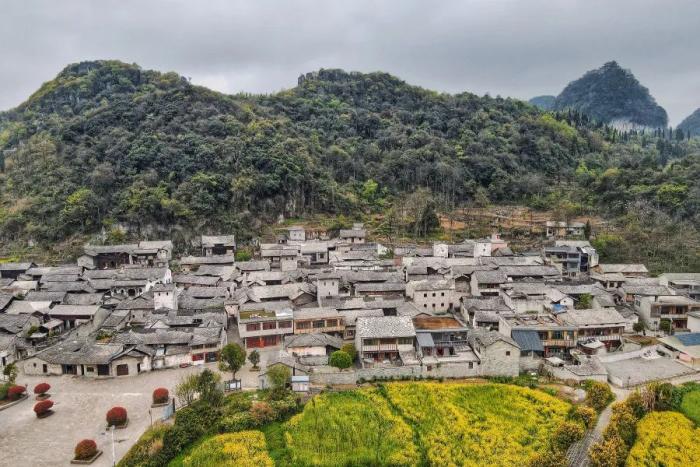 在云峰屯堡周围,青山绿水交相辉映,八个村寨分布有序,疏密得当,寨墙、碉楼、石头外墙,包裹着江南民居风格的房屋,巷巷相通、户户相连,既宜人居又利巷战,被学者誉为“冷兵器时代的最后堡垒”。