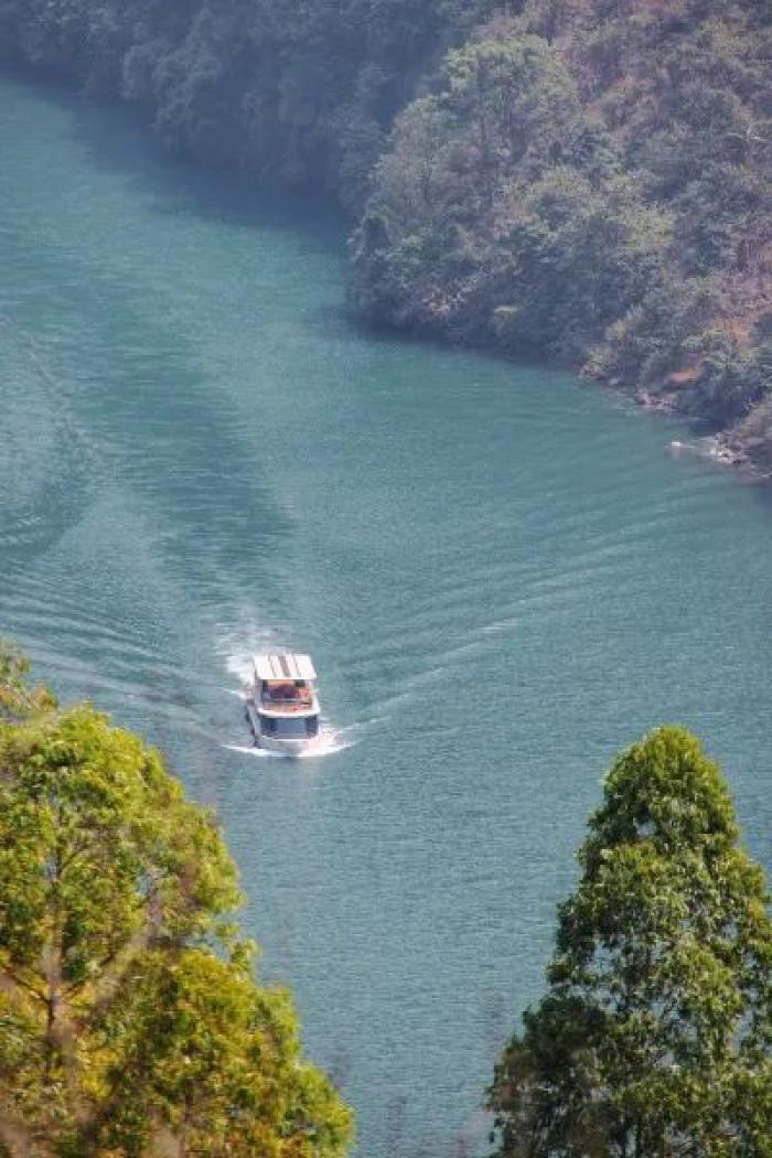 采风途中,大家乘坐游船领略峡谷两岸的峰峦叠嶂。谷底飘带般奔腾的花江河,水势汹涌,浪花翻滚,大家纷纷拿起相机、手机拍摄记录,唯恐错过任何生动瞬间。豪华的船舱里配置有KTV及休闲下午茶,游客可以在船上一展歌喉,也可登上船顶品茗赏景,惬意十足。