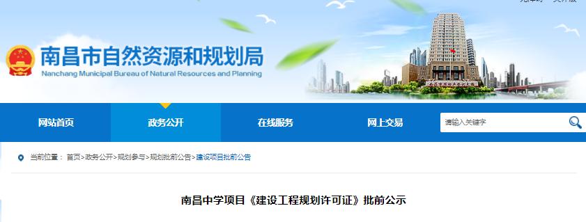 就南昌中学项目《建设工程规划许可证》