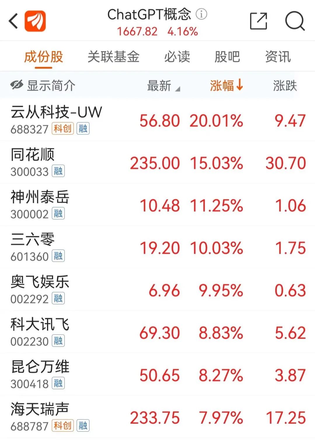 而10天就股价翻倍的云从科技,被市场认为是ChatGPT风口的高标龙头股,4月3日该股20CM涨停,成交金额近15亿元,总市值较上个交易日大增70多亿,按照最新股东户数1.38万粗略估算,户均赚超50万。