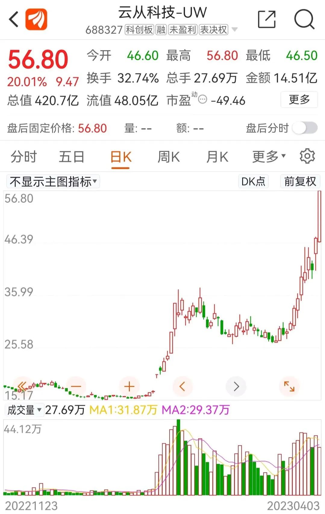 云从科技20CM涨停