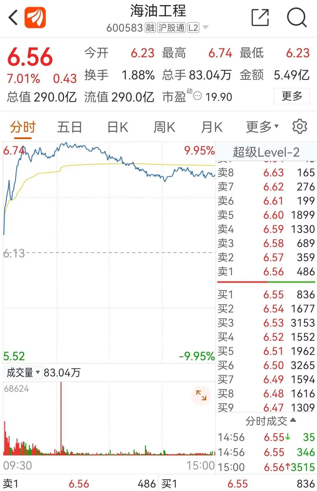海油工程一度涨停