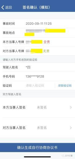 双方当事人对道路交通事故事实及成因无争议的,可以进行事故在线处理。❂ 1:确认责任认定并签名