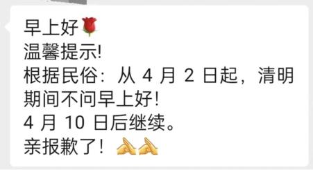 甚至有人说根据民俗清明期间不能相互问好