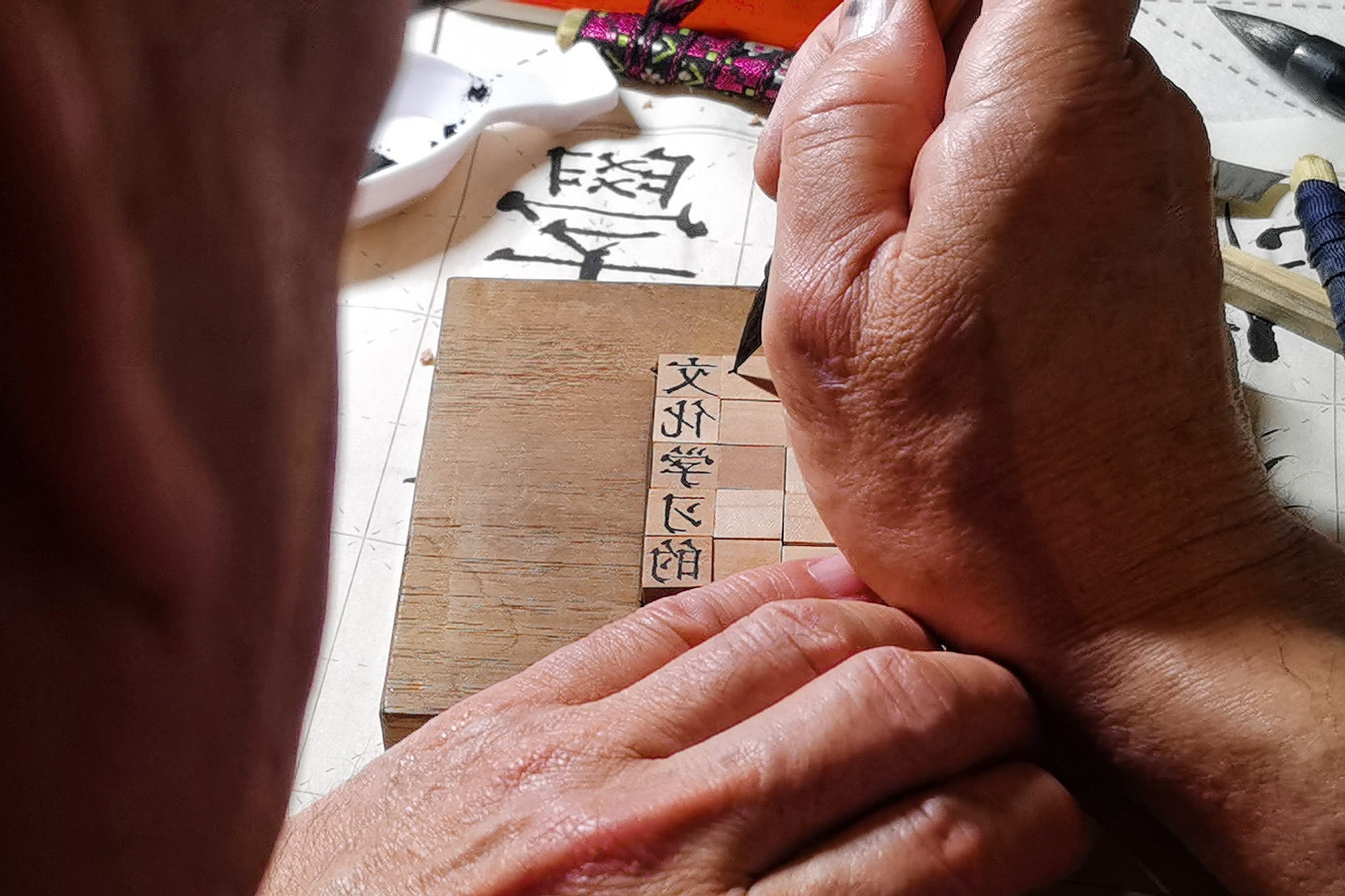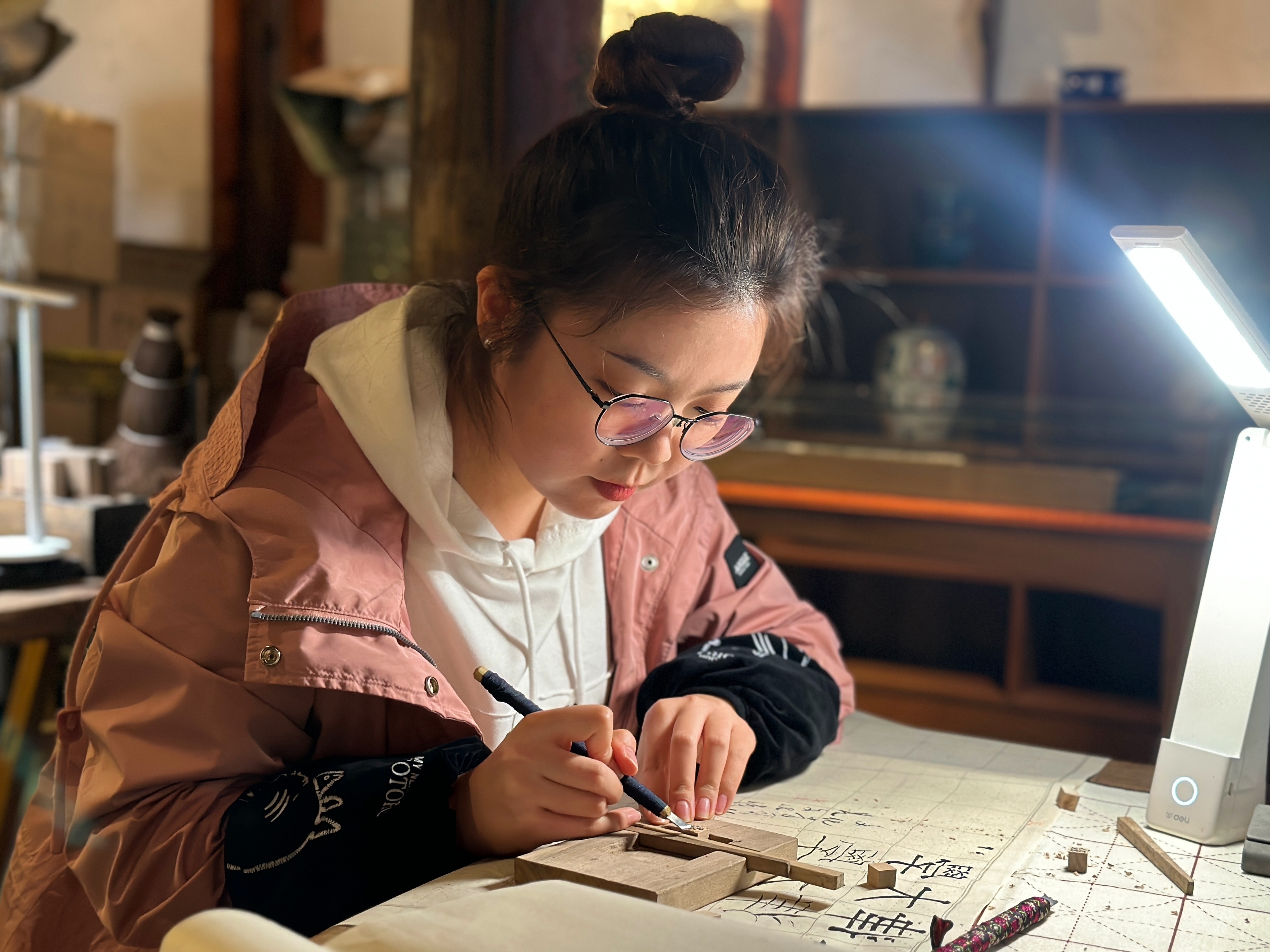 3月31日,王钏巧受邀到天津大学冯骥才文学艺术研究院“播文堂”,给7名我国首批非物质文化遗产学交叉学科(以下简称“非遗学科”)硕士研究生上实践课,介绍瑞安市平阳坑东源村历史、木活字印刷术传承流变、木活字印刷工艺等。他还从写字模、刻字到印刷,手把手耐心指导操作。研究生们学得认真专注,深入感受木活字印刷术的魅力。“这一天的课程不仅让我们了解了木活字发展史,实践了木活字写反字、刻字、印字等流程,还了解中国传统文化,提升了文化自信。”学生迟静说。