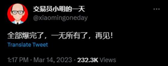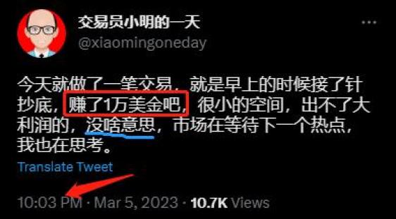 可能由于币圈的波动巨大,或者是交易员小明的杠杆上得太重,今年3月11日这天,小明的情绪变化得有些极端。