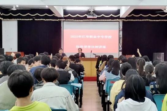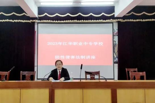 近日,为提高青少年的法治意识和自我保护能力,减少和预防青少年违法犯罪,江华瑶族自治县人民法院刑事庭副庭长兼江华职业中专学校法治副校长冯香萍,在江华职中多媒体会议室为该校师生们带来一堂以“自尊、自爱、自卫筑梦青春”为主题的安全法治教育课。