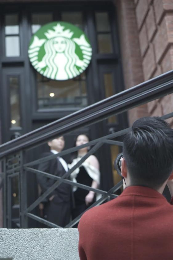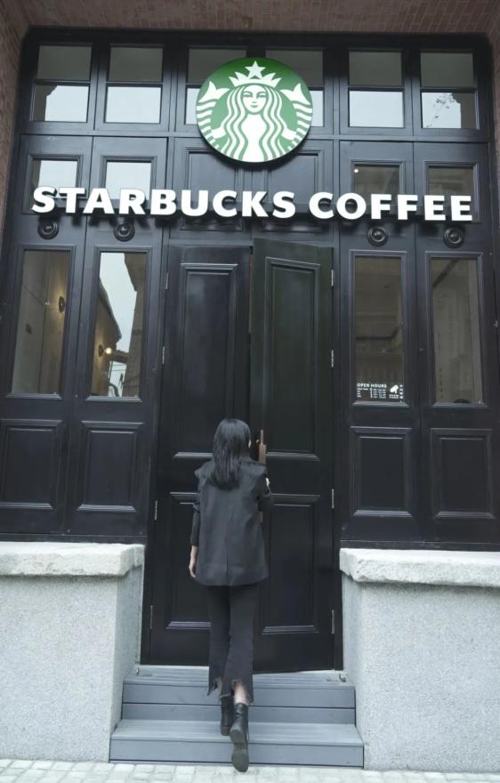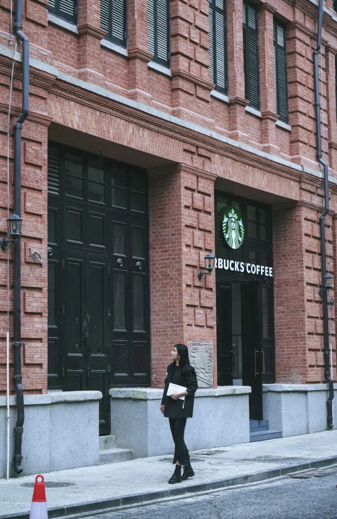 和那些透明玻璃窗里的咖啡店不同,这家星巴克有着一扇沉重的黑色木门,无法从外面看到店里的情况,配上复古的红砖墙,自带一种神秘气质。