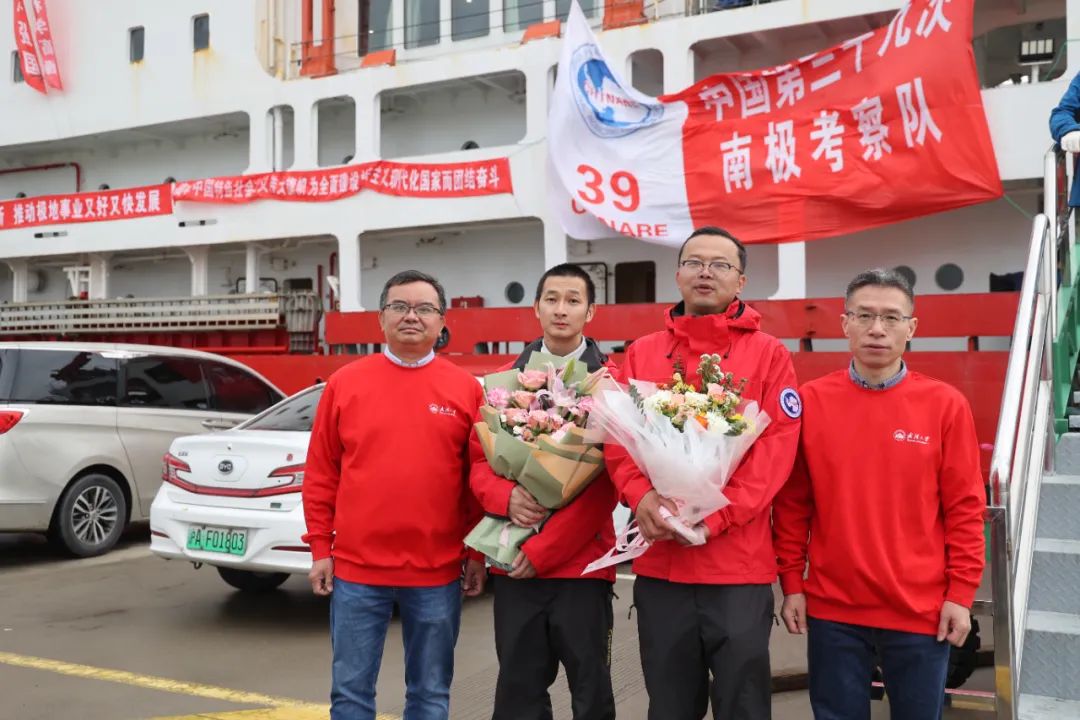 ▲杨元德、丁曦乘坐“雪龙”号抵沪百卅校庆,振奋!