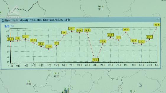 李晓鹏说:“预计雨季开始前,昆明将维持降水偏少气温偏高的趋势。特别是未来10天,昆明没有明显降水,气温快速回升,后期温度达到25℃以上,在27—28℃这个样子。”