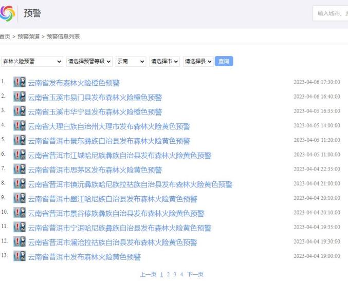 (云南省从4月4日-4月6日,连续发布了32条森林火险预警)