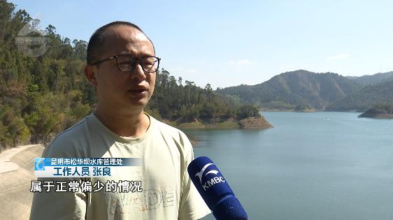 昆明市松华坝水库管理处工作人员张良说:“今年从一月到现在,我们的来水大概900万立方米,比正常年份偏少。我们现在的库容是5700万立方米,属于正常偏少的情况。”