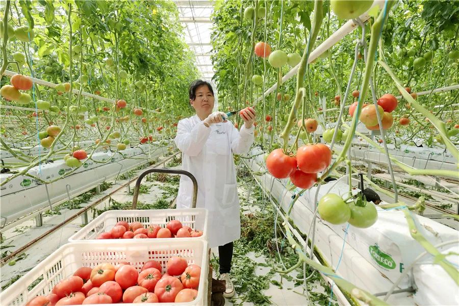 4月7日,技术人员在德清县阜溪街道龙胜村水木未来农场番茄智能大棚劳作。作为浙江省首批未来农场,该农场通过智能环境控制系统、智能水肥一体化灌溉系统、人工智能种植系统等,量化管理番茄全生命周期,全年持续生产供应,年产量125万公斤,亩均年产值达35万元。湖图 谢尚国