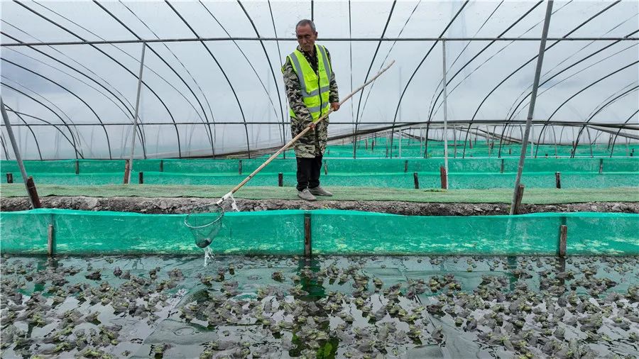 南浔区双林镇一牛蛙养殖基地,工人们正在喂食牛蛙。该基地通过全球水产养殖联盟评审验收认证,是全球首家BAP认证牛蛙养殖基地。这里的牛蛙在养殖过程中不使用抗生素,运动空间是传统牛蛙的3倍,池塘里每日流动的是太湖水,可食用出肉率高出传统牛蛙5%。湖图 陆志鹏
