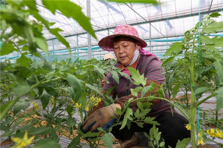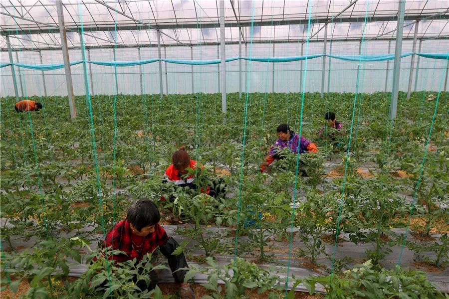 吴兴高新区智慧农业园区,工人在番茄大棚除草、吊蔓。湖图 何伟卫 沈旭奇