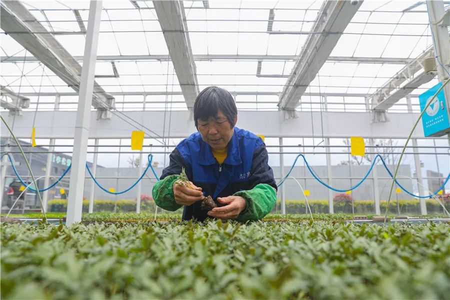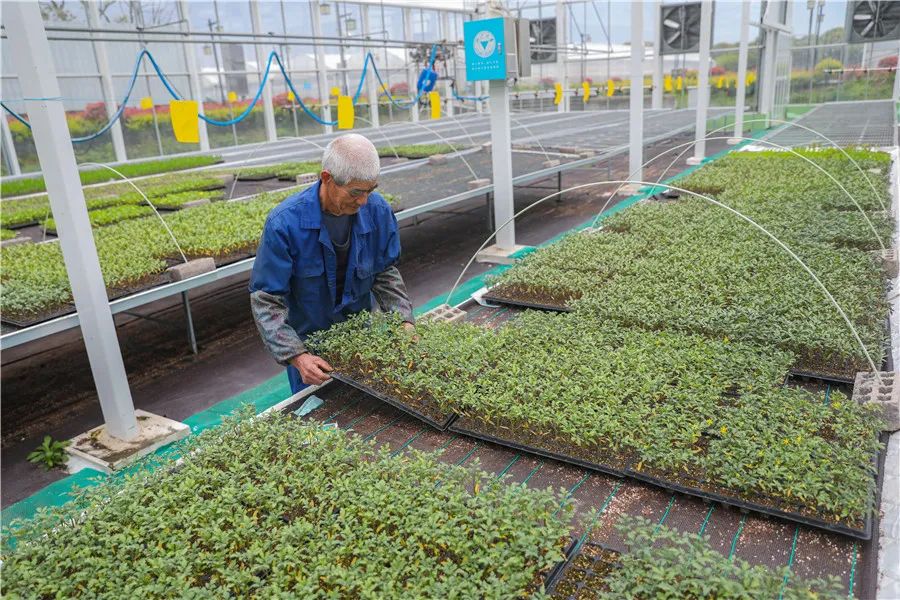 南浔区旧馆街道果蔬高新科技孵化园,工作人员正在大棚里培育番茄、青菜等蔬菜苗。该大棚采用物联网、5G通信、北斗导航等技术,安装无线传感器,通过数字化智能管理系统,实时采集光照、温度、湿度等生产环境参数,是园区的“智慧管家”。湖图 陆志鹏 摄