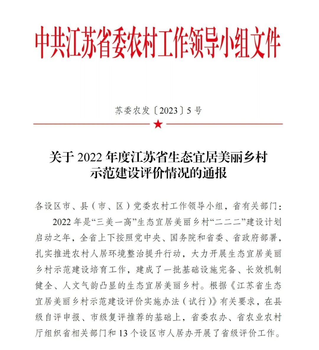 江苏省委农村工作领导小组公布了