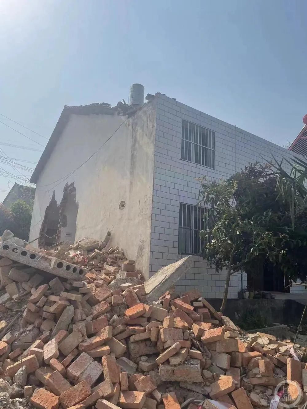 ▲涂记明的房屋被凿出两个洞。图片来源/受访者供图