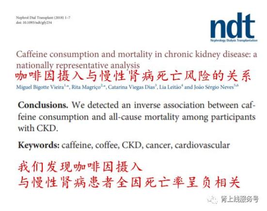 2.Caffeine consumption and mortality in chronic kidney disease:a nationally representative analysis.NDT