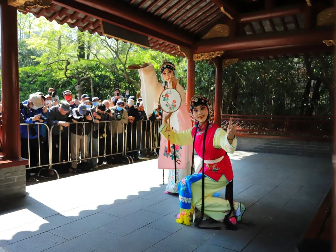 除了赏牡丹,游园会还有很多精彩的活动让游客流连忘返。在牡丹亭里,两位昆曲演员演唱的《牡丹亭》选段正是此次活动的亮点之一。两位演员唱腔圆润柔美、悠扬徐缓,加上华美的服饰、精致的妆容,让今天的演出堪称一次精彩绝伦的视听盛宴,市民游客们直呼过瘾,在家门口感受到了中国戏曲文化的魅力。