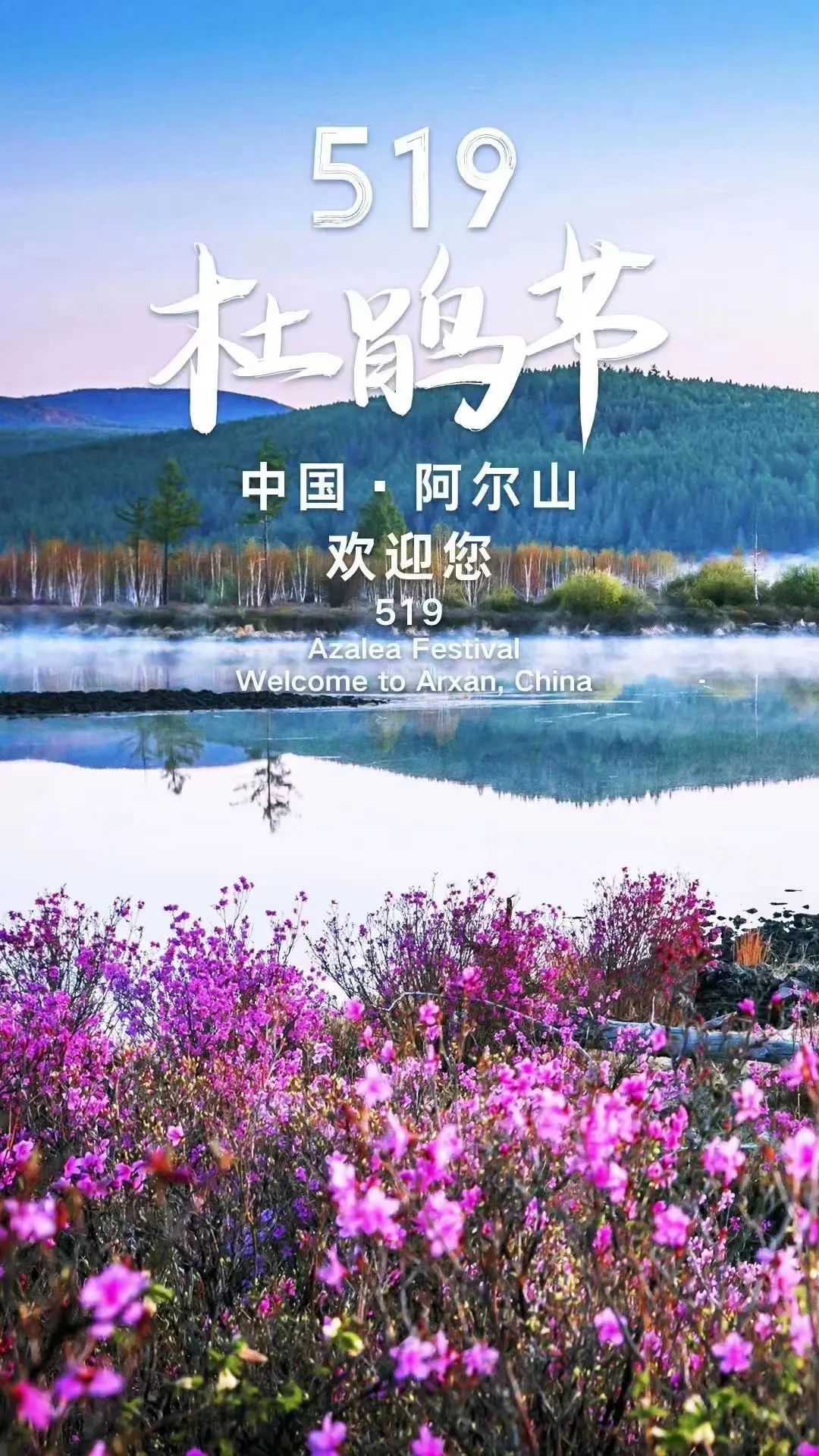 “走南走北,阿尔山最美。阿尔山它不是山,是一座藏在童话世界里的小城。5月19日,阿尔山杜鹃节,让我们畅游花海,共赏春光。”