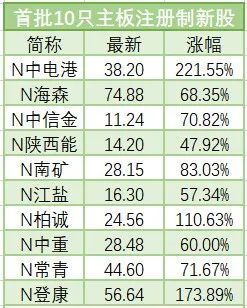主板注册制首批10只新股分别是陕西能源、南矿集团、江盐集团、柏诚股份、海森药业、中电港、常青科技、中信金属、中重科技、登康口腔。