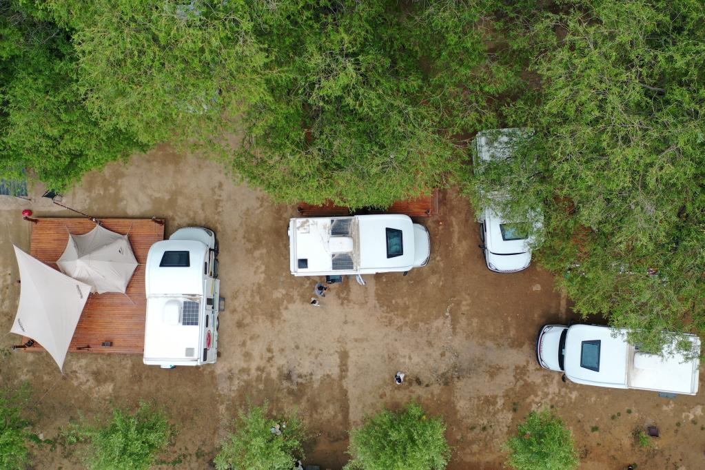 甘肃省永靖县刘家峡魏家坡房车露营活动现场(无人机照片)。新华社记者 陈斌 摄 图源:新华网