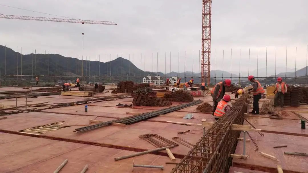 近日,在遂昌县云峰街道龙板山工业区块的东城新区智造园(龙板山产业园)项目建设现场,钢筋林立,工人来回穿梭,阴雨天也压不住工地里一片热火朝天的干劲。
