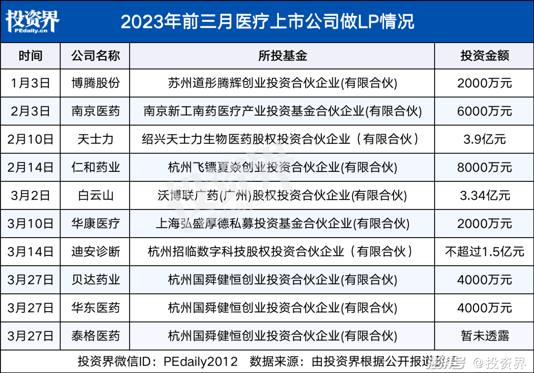 今年,这些医疗上市公司做LP