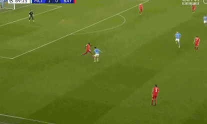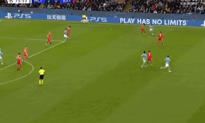 第27分钟,B席横传,罗德里外围晃过穆西亚拉后左脚兜射,皮球直钻网窝死角,曼城1-0拜仁。