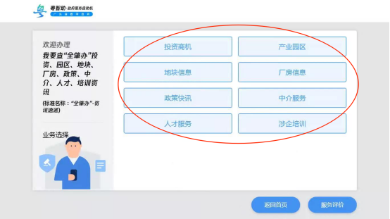 △粤智助·政府服务自助机“全肇办”服务界面。市政数局供图我市推动“粤智助”向高要金利镇信基创新科技园、四会大沙镇南江工业园等11个企业园区、镇村基层延伸,上线税费服务、劳动就业、健康体检报告等领域企业群众事项,进一步实现“园区办”“就近办”。