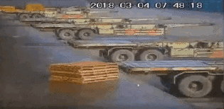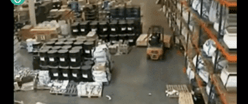 叉车货物宽度超过路线允许宽度,挂到路边货架,险些酿成事故。04