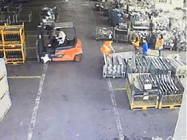 员工用体重作为配重失衡后,其他员工来帮忙,被叉车压倒。03