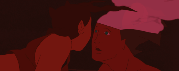 在汤浅的作品序列中,对于情爱的感性描摹一以贯之。“比起常规的情爱场景,我想让它尽可能的私人化。”从《心理游戏》迷幻狂乱的色彩,到《兽爪》因性变身怪物的设定,再到《摔跤的罗密欧与朱丽叶》摔跤对于SM的拟化,个个把特色发挥到了极致。