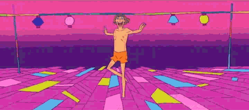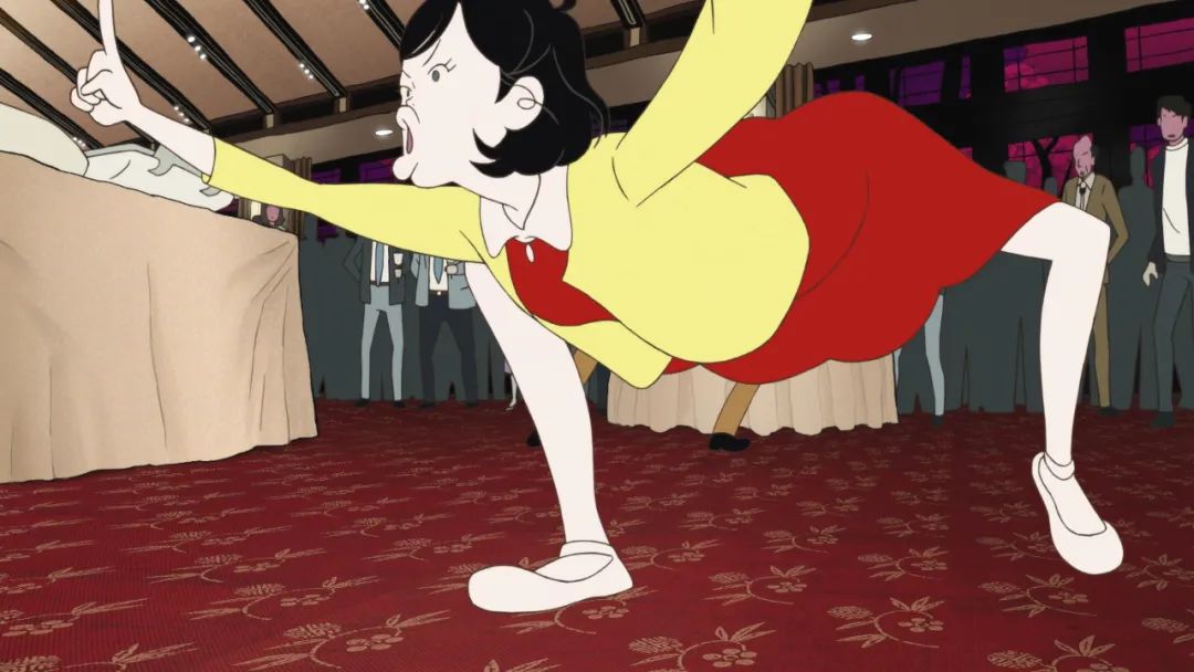 汤浅很少美化动画中的人物,还会特意放大外貌的缺陷,甚至走夸张的怪诞路线。比如《兽爪》里有一个角色很像灵长类的山魈,面容丑陋怪异。人物的动作,也基本是怎么滑稽怎么来。《春宵》中的诡辩舞,需要让人弯着上身撅起屁股。虽然极尽怪诞荒谬,却制造出一种与现实间离的喜剧效果。