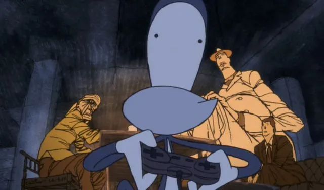 《心理游戏》这一点在他的首部动画长片《心理游戏》中,有集中的体现。《瞬息全宇宙》在2022年尝试的,汤浅2004年就玩过了。他设置了面貌瞬息万变的上帝,可以是男是女,是人是物,甚至是人和物的诡异混合体。每个角色的人生选择也不止一种,被快速剪接在了一起。只有逐帧暂停观看,才能参破玄机。