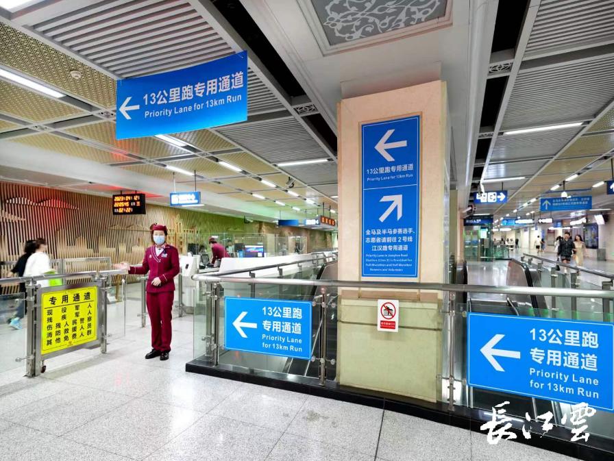 2号线江汉路站值班站长罗路提醒,全马、半马参赛选手,从2号线江汉路C、D口出站;健康跑参赛选手,从2号线江汉路B口及6号线的J口出站,如有困难可及时向相关工作人员寻求帮助。