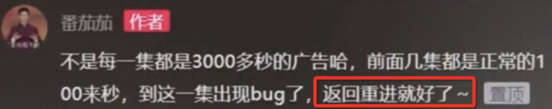 据该网友称,自己在通过互联网电视上通过酷喵观看优酷的一部独播剧集时,突然出现3000多秒的广告倒计时。此后该网友补充道:“不是每集都是3000多秒的广告,前面几集都是正常的100来秒,到这一季出现bug了,返回重进就好了。”