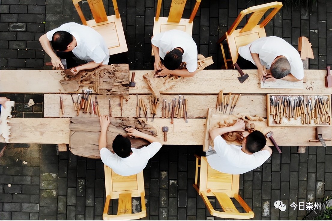 结合产业创新融合发展思路,廖家木雕还以文化元素植入、空间氛围营造等形式,积极与生态旅游、民宿酒店、文化创意、精品餐饮等业态探索融合发展路径,打造出崇州市古建艺雕展览馆、木艺村AAA级林盘景区、“廖家木雕”非遗村落、和木·百乐来主题餐饮园等项目,助力当地乡村振兴。