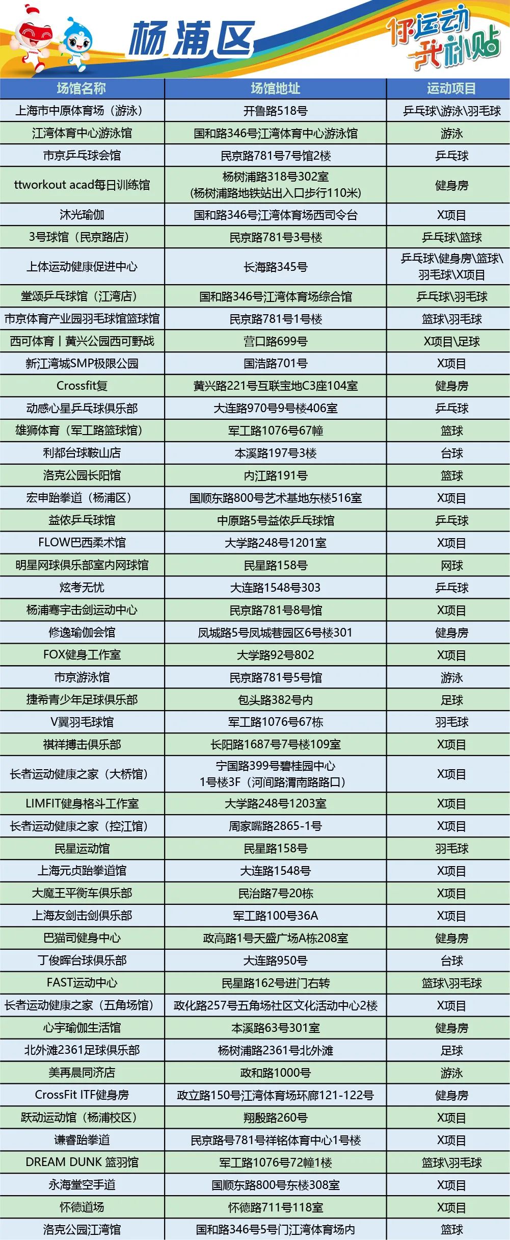 上海体育消费券配送今日启动,近700家定点场馆名单公布