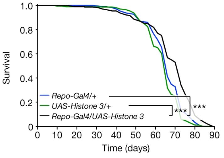 研究者尝试在实验动物过表达核小体主要组分之一的组蛋白,过表达组蛋白H5或H3能够减缓RNA聚合酶Ⅱ延伸速度,补偿了衰老导致的组蛋白损失,并且有效延长了果蝇的寿命。
