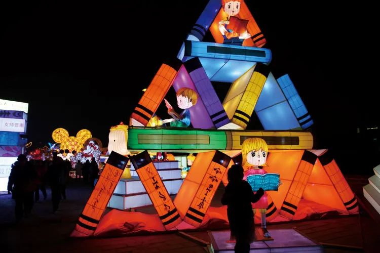 2019年1月28日,西安。书籍造型的彩灯。(图/视觉中国)
